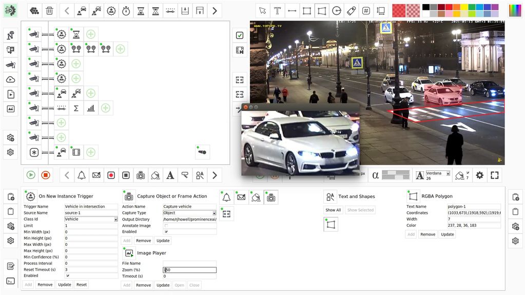 With DMS, each input source can have any number of specialized event triggers, each with custom criteria including areas of inclusion and exclusion (video only), and with any number of actions to be invoked on event occurrence.